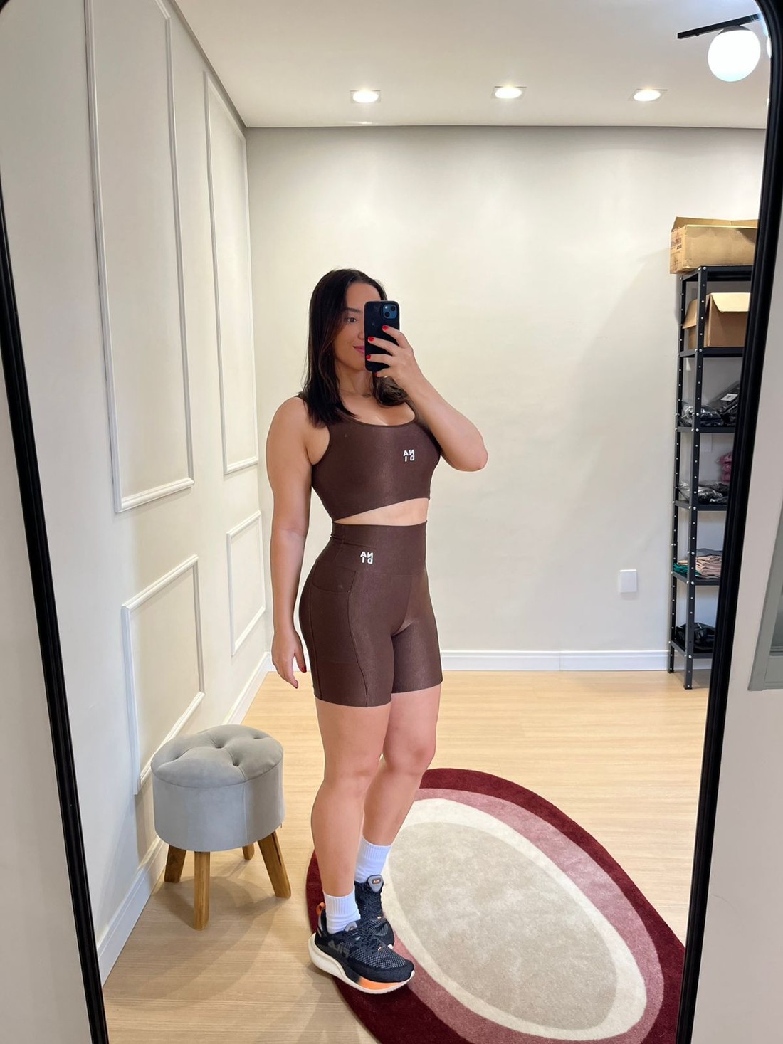 O Conjunto Bermuda e Top Rib Glow Expresso é o que faltava para seus treinos terem um brilho a mais. Perfeito para quem ama sustentação e comodidade, a bermuda meia coxa, conta com bolso lateral, pra você guardar pequenos pertences, e o top conta com bojo removível.