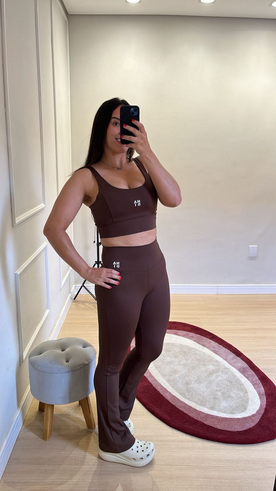 A Calça é a versão premium do nosso modelo flare campeão de vendas. Confeccionada em poliamida de alta qualidade, oferece toque macio, excelente elasticidade e caimento impecável no corpo.